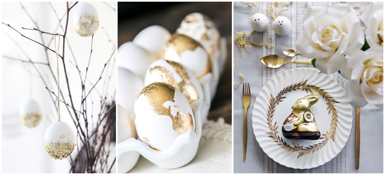 Wolisz delikatne, subtelne dekoracje i nie czujesz się dobrze w otoczeniu intensywnych kolorów? Ta propozycja będzie więc dla Ciebie idealna. Duża ilość bieli, okraszona złotem pod postacią pisanek i sztućców, to najlepsze rozwiązanie dla minimalistek.
