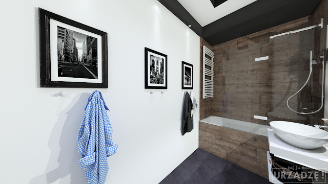 Żeby była jasność – ja też używam tych trendów przy projektowaniu mieszkań dla moich klientów! Generalnie nie ma nic złego w korzystaniu z bieżących nurtów, o ile dopasujesz je pod siebie i wzbogacisz o swój indywidualny charakter. Nie odgapiaj, nie przerysowuj kreska w kreskę znalezionego gdzieś schematu – wybierz z niego to, co podoba Ci się najbardziej i weź to coś na warsztat. Pobaw się i poeksperymentuj. To trochę jak z tą łazienką poniżej – niby drewno, biel i szarość – te same materiały, które używane są w większości projektów, ale jednak odstaje ona trochę na tle innych realizacji.