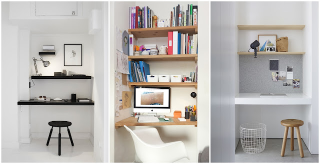 Rozejrzyj się po mieszkaniu. Masz jakąś niewykorzystaną wnękę pomiędzy, przypuśćmy, ścianą i kominem? Albo ścianą a bokiem szafy? Lub po prostu, między dwiema ścianami w wąskim pomieszczeniu? Bardzo łatwo możesz zaaranżować w niej kąt do pracy. Wystarczy blat, krzesło, które pod niego wsuniesz i kilka półek na najważniejsze drobiazgi. Blat możesz kupić w Ikei lub w najbliższym markecie budowlanym – przytną Ci go na wybraną długość, a więc nawet niewymiarowa wnęka się nada. Wsporniki (lub nogi, jeśli wolisz) kupisz w tym samym miejscu. Cena zestawu, w zależności od Twoich estetycznych wymagań wahać się będzie od stówki do maksimum trzech. Dodaj do tego tablicę na inspiracje, jakiegoś kwiatka, fajną lampkę, obowiązkowy kubek z kawą i już możesz cykać fotki na Instagram.