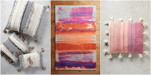 Na uwagę zasługują też tekstylia. Przepiękne koce i narzuty z frędzlami, kolorowe poduszki, rewelacyjne, wzorzyste dywany… Bardzo oryginalne dodatki, które potrafiłyby ożywić właściwie każde wnętrze. Takie tkane poduszki z grubego płótna marzyły mi się od dawna – mogłam je wreszcie pomacać i tylko utwierdziłam się w przekonaniu, że to doskonały wybór do mojego salonu. Soon.