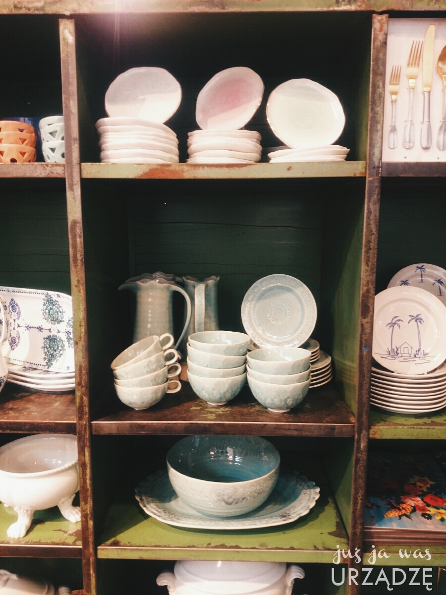 Wnętrza sklepu są przemyślane w najdrobniejszych detalach – akcesoria wyeksponowane są na drewnianych stołach i konsolach, stylizowane kredensy zapełnione są przez świece i ceramikę, a tekstylia prezentowane są na stylowych kanapach. Zadbano nawet o podłogę – zamiast gresu, w tym sklepie ułożono lite dechy. Wnętrze jest bardzo spójne i klimatyczne i zupełnie nie czuje się tego, że jest się w sieciówce. Wręcz przeciwnie – ja czułam się tam trochę jak w sklepiku ze starociami, w którym za każdym rogiem czają się piękne rzeczy.