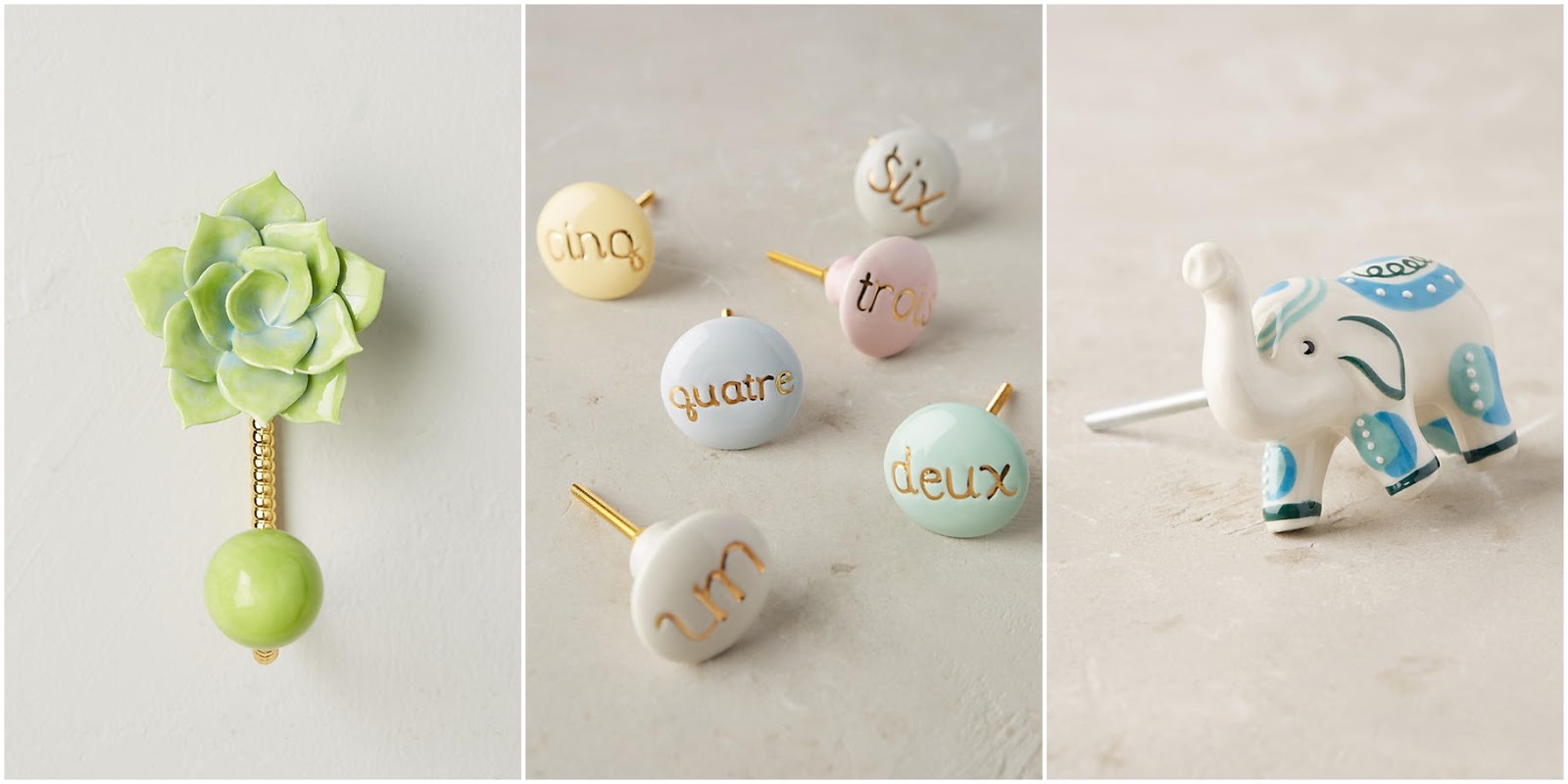 Jeśli masz ochotę na drobny refreszing w stylu Anthropologie, to powinnaś przejrzeć asortyment uchwytów do mebli. Niektóre to istne maleńkie dzieła sztuki! Mnie rozłożyła na łopatki gałka w kształcie sukulenta – niewygodna jak diabli, ale znam kilka blogerek, które dałyby się za nią pokroić!