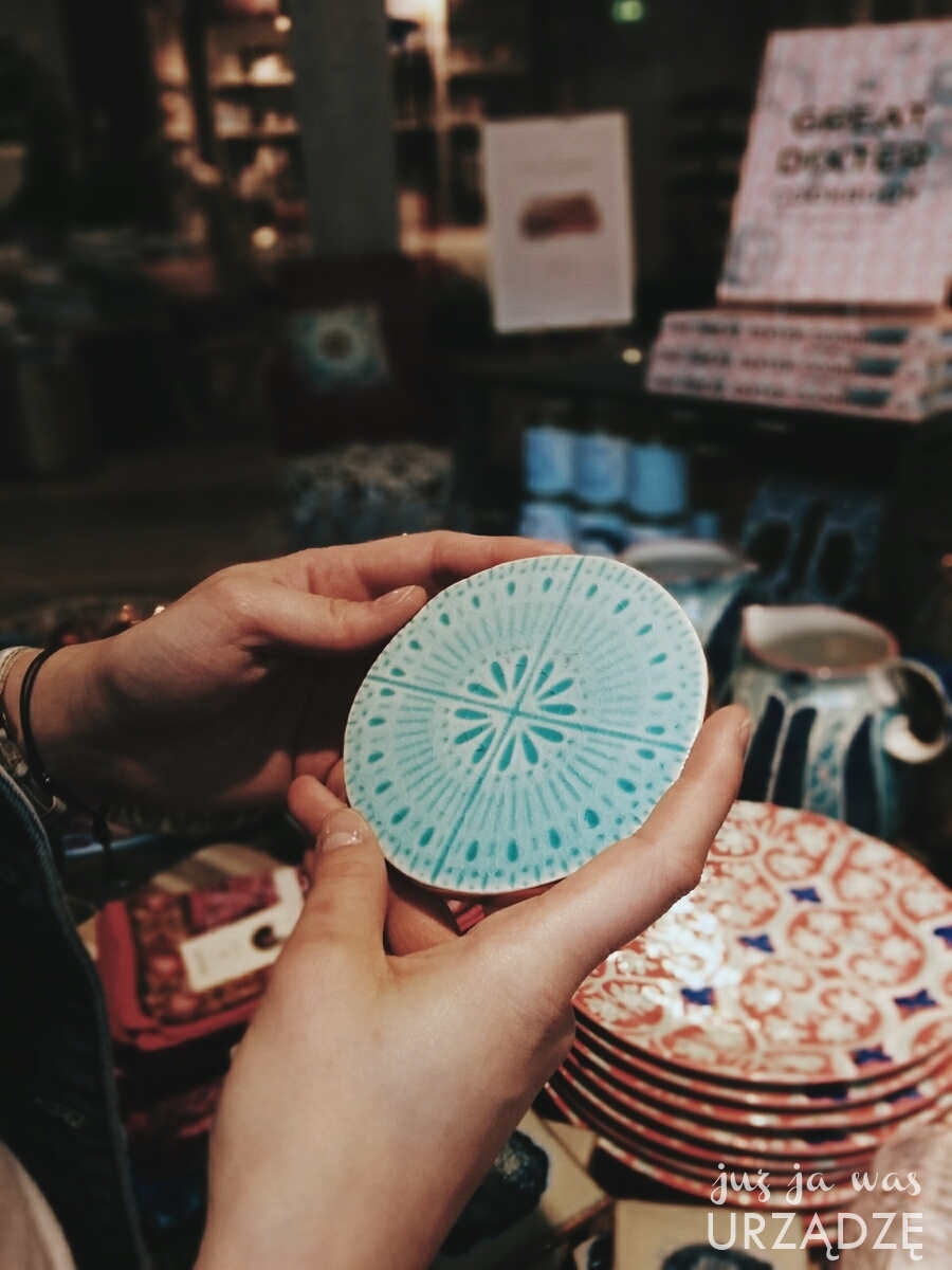 Największą część sklepu przeznaczoną dla dodatków do domu zajmowała zastawa stołowa – przepiękne talerze, miseczki, oryginalne kubki i patery. Nie mogłam oderwać od nich oczu – wyobrażasz sobie rodzinną imprezę ze stołem zastawionym takimi naczyniami? Przystawki podane na talerzu, który przypomina plaster agatu? To byłby hit!