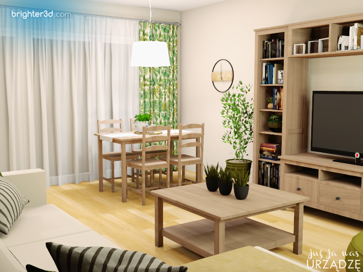 Moim poligonem doświadczalnym będzie pokój dzienny z przeciętnego, polskiego mieszkania. Ma on około 20 metrów kwadratowych, duże okna z wyjściem na balkon i bardzo bezpieczną, beżowo – brązową kolorystykę.