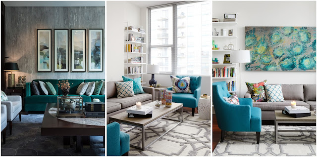 Beżowe wnętrze dobrze wyglądało z miętą, tutaj natomiast postawiłam na nieco ciemniejszy odcień. Morski świetnie uzupełni monochromatyczne wnętrze. Jest tylko jedno ale – to dość zimny kolor, więc dla wyrównania warto dorzucić kilka dodatków w ciepłych odcieniach – żółtych, pomarańczowych lub brązowych. Szczególnie, gdy meble też są białe lub szare.