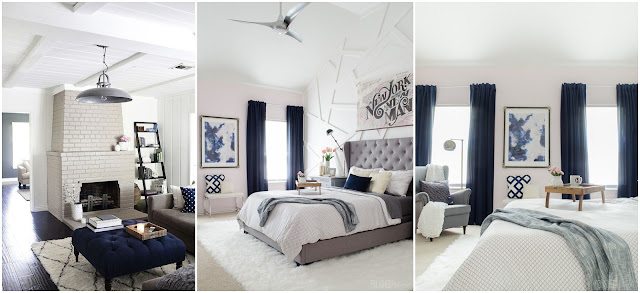 Albo inaczej z greige. Już kiedyś o nim pisałam, ale przypomnę tylko, że jest to odcień pomiędzy szarością a beżem – coś, co potocznie nazywamy czasem “kawa z mlekiem” (choć odcieni kawy z mlekiem jest tyle, co i amatorów kawy z mlekiem). Okazuje się, że i ten kolor bardzo fajnie komponuje się z ciemnym niebieskim. Jest to bardzo spokojne i mega przytulne rozwiązanie. Granat, który w takim wnętrzu najczęściej znajduje się na tekstyliach jest tak przyciągający, że chciałoby się od razu wskoczyć na kanapę i wyłożyć nogi na miękki podnóżek. Jeśli chcesz wykorzystać granat w swoim wnętrzu, ale nie do końca wiesz jak, połącz go z taupe. Efektowne wnętrze masz jak w banku.