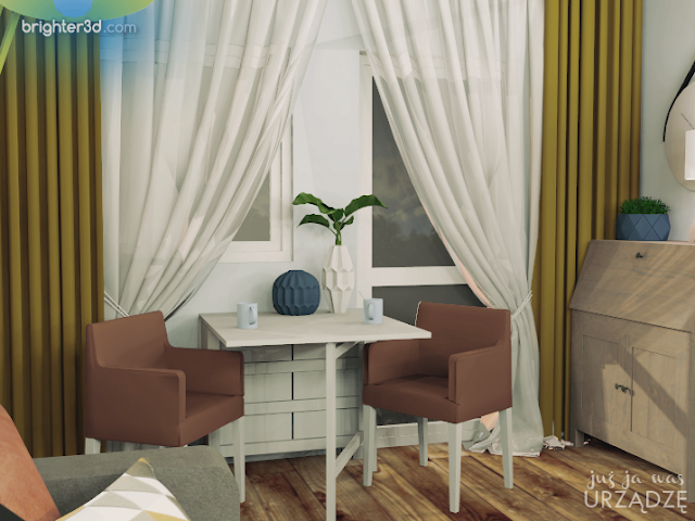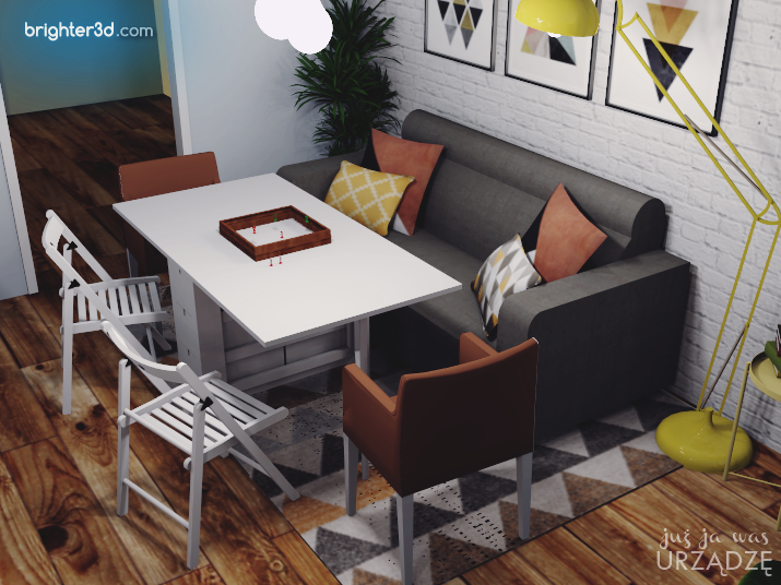 Jedną z większych zmian w salonie jest jednak wymiana stołu. Proponowany przeze mnie model z IKEA to całkowity gamechanger dla tego wnętrza. NORDEN to trzy stoliki w jednym. Kiedy nie jest potrzebny, składa się do szerokości 26cm i udaje konsolę. Na co dzień jest wygodnym stołem dla dwójki, natomiast od święta potrafi ugościć nawet 6 osób, rozkładając się do szerokości półtora metra. Nie wspominając nawet o tym, że ma szufladki, które ukryją wszystkie niezbędne przy stole skarby. Myślę, że Kasi spodoba się to rozwiązanie!
