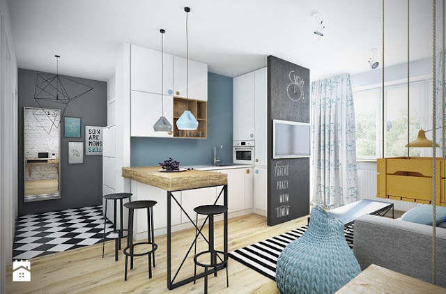 Czy zaglądając do tego salonu powiedzielibyście, że właściciele to ludzie z takimi fajnymi zainteresowaniami? No właśnie. Dlatego koniecznie muszą się tu pojawić kolory, wzory i gadżety. Szczególnie, ze Kasia podesłała mi kilka wnętrz w których to właśnie ciekawe, barwne dodatki grają pierwsze skrzypce.