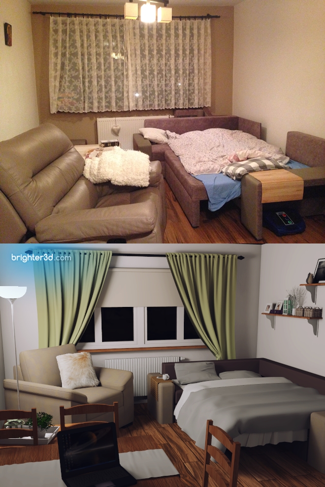 Każdy mebel z innej parafii tego niestety nie zmienię bo jak wspomniałam nie chcemy kupować za wiele mebli. Brak ogólnej koncepcji jak połączyć ten cyrk w jedna oryginalna całość. Meble obecne muszą pozostać w tym pokoju, dodatkowo na oknie od strony sofy musza znajdować się zasłony zaciemniające, krótkie, ponieważ jest kaloryfer.