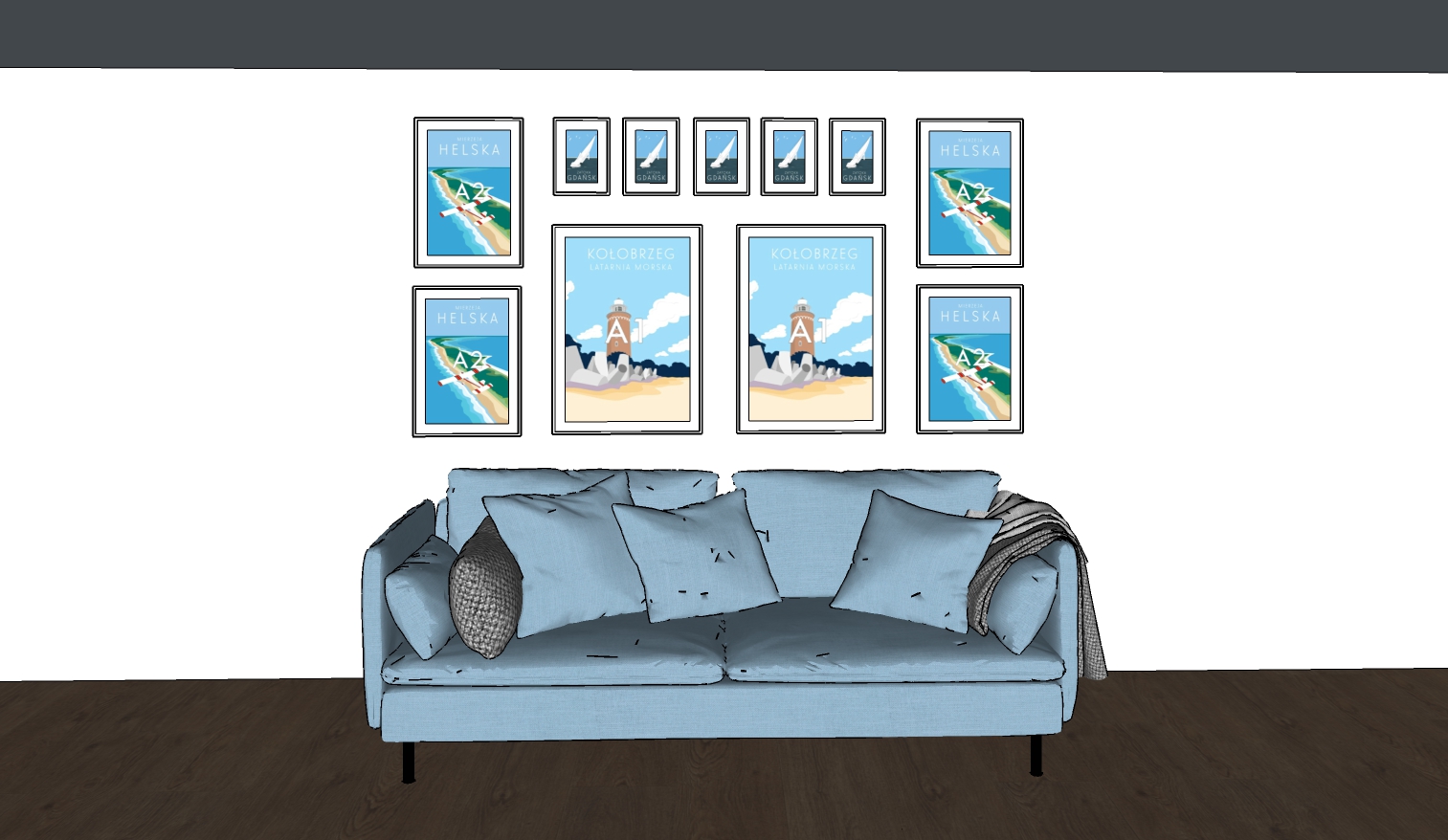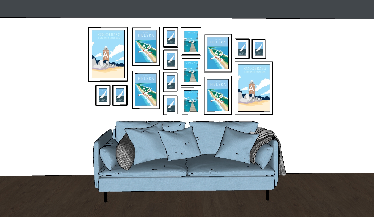 Specjalnie dla Ciebie przygotowałam aż 8 przykładowych galerii opartych wyłącznie na grafikach w formatach A1, A2, A3 I A4. Możesz skopiować je bezpośrednio do swojego wnętrza!