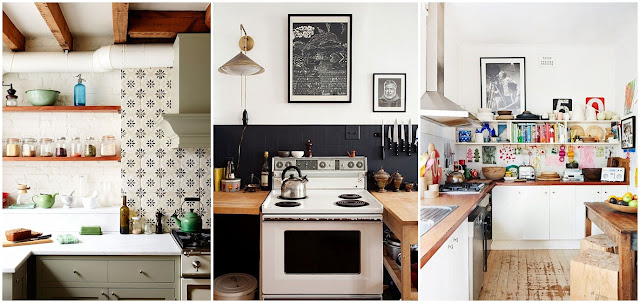Co najbardziej podoba mi się w tych kuchniach? Wolność. Nie ma określonych zasad – zardzewiały, metalowy koszyk możesz postawić obok najsłodszej filiżanki w różowe kropki, a i tak będzie pasować. Na tle białych ścian i neutralnych mebli możesz zaaranżować co tylko ci się podoba, a to trend rewelacyjnie wpisujący się w potrzeby (i możliwości) młodych ludzi, którzy jeszcze przed sobą mają zakup pierwszej zastawy stołowej, trzynastoelementowego zestawu garów i pasujących do nich chochelek. Poza tym, nie potrzeba wielkich nakładów finansowych, żeby uzyskać efekt podobny do dzisiejszych inspiracji. Wystarczą farby, kilka narzędzi i trochę chęci do pracy. Inspiracjami już się zajęłam, więc nie macie żadnych wymówek. Ja w sumie też nie.