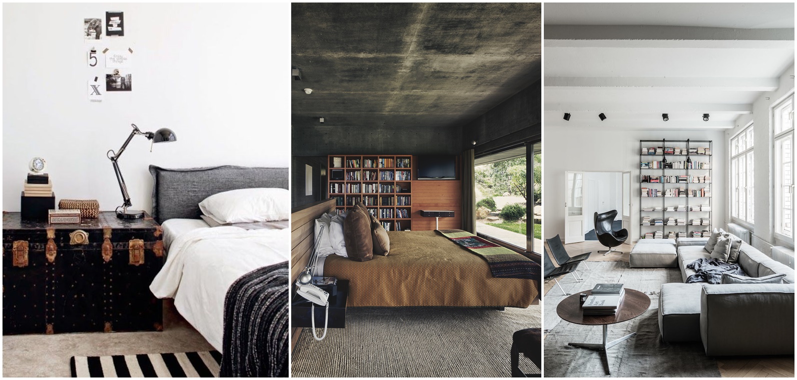 Oprócz wspomnianego drewna i skóry w męskich wnętrzach króluje cegła, beton architektoniczny i stal. Te zimne materiały skontrowane są jednak dywanami i zasłonami – zwykle jednolitymi lub z bardzo subtelnym wzorem. Podczas gdy my wzdychamy do pościeli w kwiaty i poduszek z kaktusami, mężczyźni wybierają jednokolorowe tkaniny, które dużo łatwiej połączyć jest w jedną, sensowną całość. Spryciarze 🙂