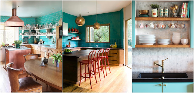 Ten duet kojarzy mi się z inspiracjami z Indii i Maroka, a wam? Jest w nim coś orientalnego, intensywnego, więc z pewnością nie jest to paleta dla każdego. Jednak tym odważniejszym zdecydowanie polecam spróbować – szczególnie dobrze wygląda w kuchniach i łazienkach, ale daję głowę, że i w przedpokoju da radę. Nie polecałabym go jednak do salonu czy sypialni – taka ilość intensywnych odcieni mogłaby być na dłuższą metę męcząca. Do turkusu najbardziej pasować będą ciepłe odcienie miedzi – te, które wpadają w pomarańcz. Z tym zestawieniem należy jednak uważać – zbyt dużo elementów może spowodować, że całość wyglądać będzie kiczowato i “bazarkowo”.