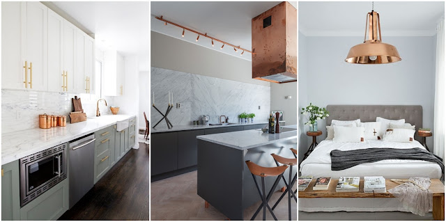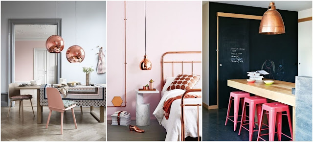 Jak wspominałam wyżej, początkowo nie byłam przekonana do tego duetu, jednak inspiracje, jakie wyszukałam zupełnie zmieniły moje podejście. No bo, sami spójrzcie, jak świetna i delikatna jest ta paleta! Taka pudrowa, nienarzucająca się, a jednocześnie oryginalna. Jest to na pewno zestawienie trudniejsze do wystylizowania niż poprzednicy, ale gotowe wnętrze będzie na pewno tematem wielu dyskusji i westchnień 😉 Miedź połączona z pudrowym różem, okraszona bielą i szarością sprawdzi się w kobiecym pokoju dziennym, sypialni i stonowanym pokoju dziecięcym. Warto jej spróbować!