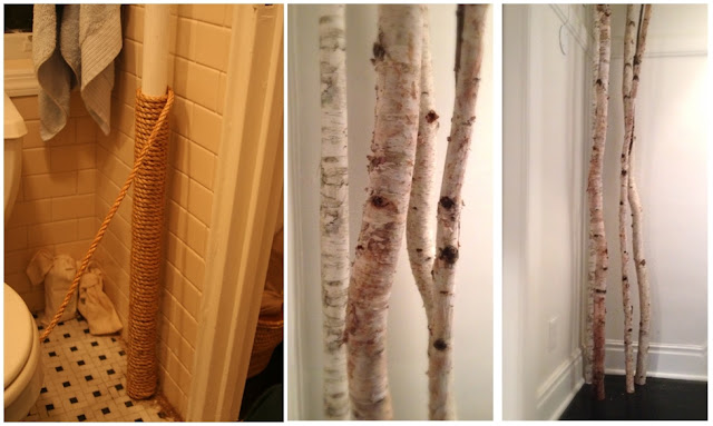 Rurki “od centralnego” potrafią w sezonie grzewczym rozgrzać się do czerwoności. Żeby uniknąć przypadkowych oparzeń, a także pozbyć się nagich rurek z łazienki, możesz owinąć je sznurkiem. Tutaj dobrze sprawdzą się grube sznury, rodem z klimatów marynistycznych – białe, granatowe albo te naturalne. Sznurek jest niezupełnie w Twoim stylu? Ok, a co myślisz o okleinie imitującej korę brzozową? Zanim cokolwiek powiesz, spójrz na zdjęcie poniżej – dla mnie bomba.