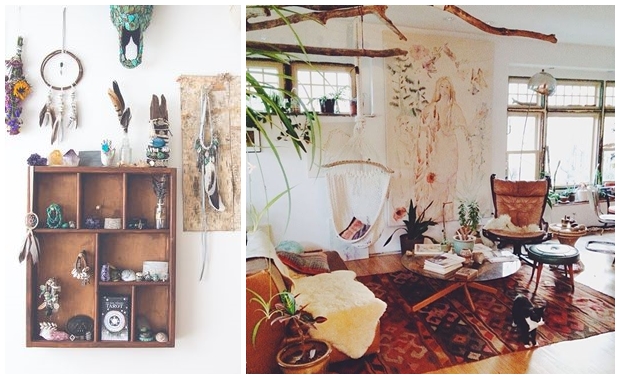 W pewnym sensie, diabeł tkwi w szczegółach. Z pozoru zwykle wnętrze może nabrać charakteru przez rzucenie na kanapę wzorzystych poduszek, powieszenie kilku ramek i tkanych obrazków (jak to się nazywa, wie ktoś?), wyhodowanie pięknych roślin. Klimat boho tworzą jedyne w swoim rodzaju dodatki: futrzaste i kolorowe dywany, wspomniane wcześniej wiszące siedziska, łapacze snów i kolorowe doniczki. Zestawienie tych wszystkich rzeczy sprawi że we wnętrzu zagości wolność, jak za czasów Lennona. Kiedy, jak nie teraz, na lato? 🙂 żeby udowodnić wam, że nadanie charakteru boho zwykłemu pokojowi nie jest trudne, odsyłam do Enjoy Your Home. Lu urządzila swojej siostrze świetne wnętrze w tym stylu, przy nakładzie naprawdę niewielkich środków!