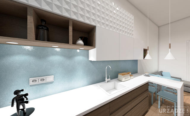 No i to jest właściwie kwestia najważniejsza. Samo oświetlenie górne w kuchni nie wystarczy – stojąc przy blacie, będziesz rzucała sobie cień na ręce. Jeśli zatem nie chcesz sobie poobcinać palców robiąc leczo, powinnaś zaprojektować sensowne oświetlenie blatu.